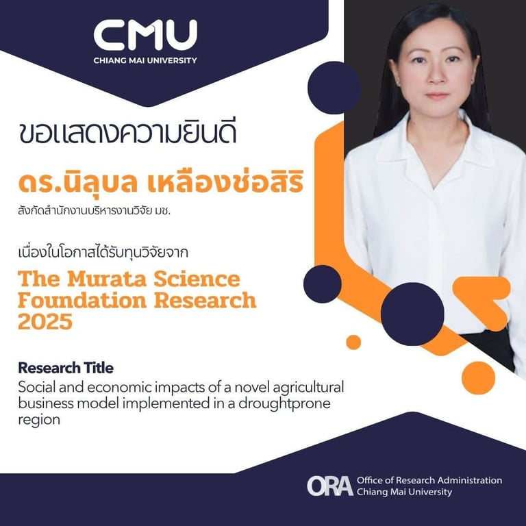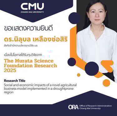 Dr. Nilubon Luangchosiri was also granted support for her research project titled: